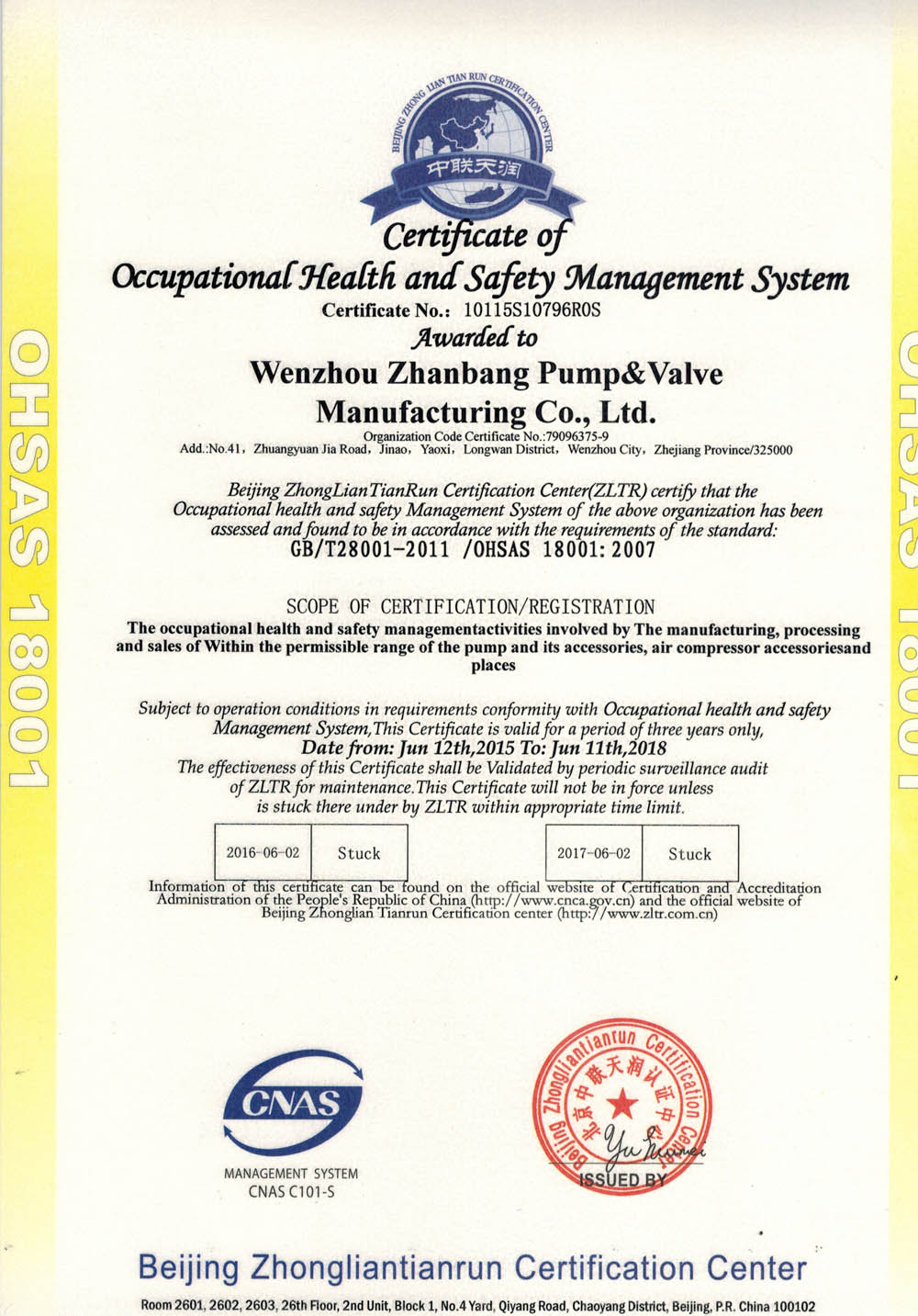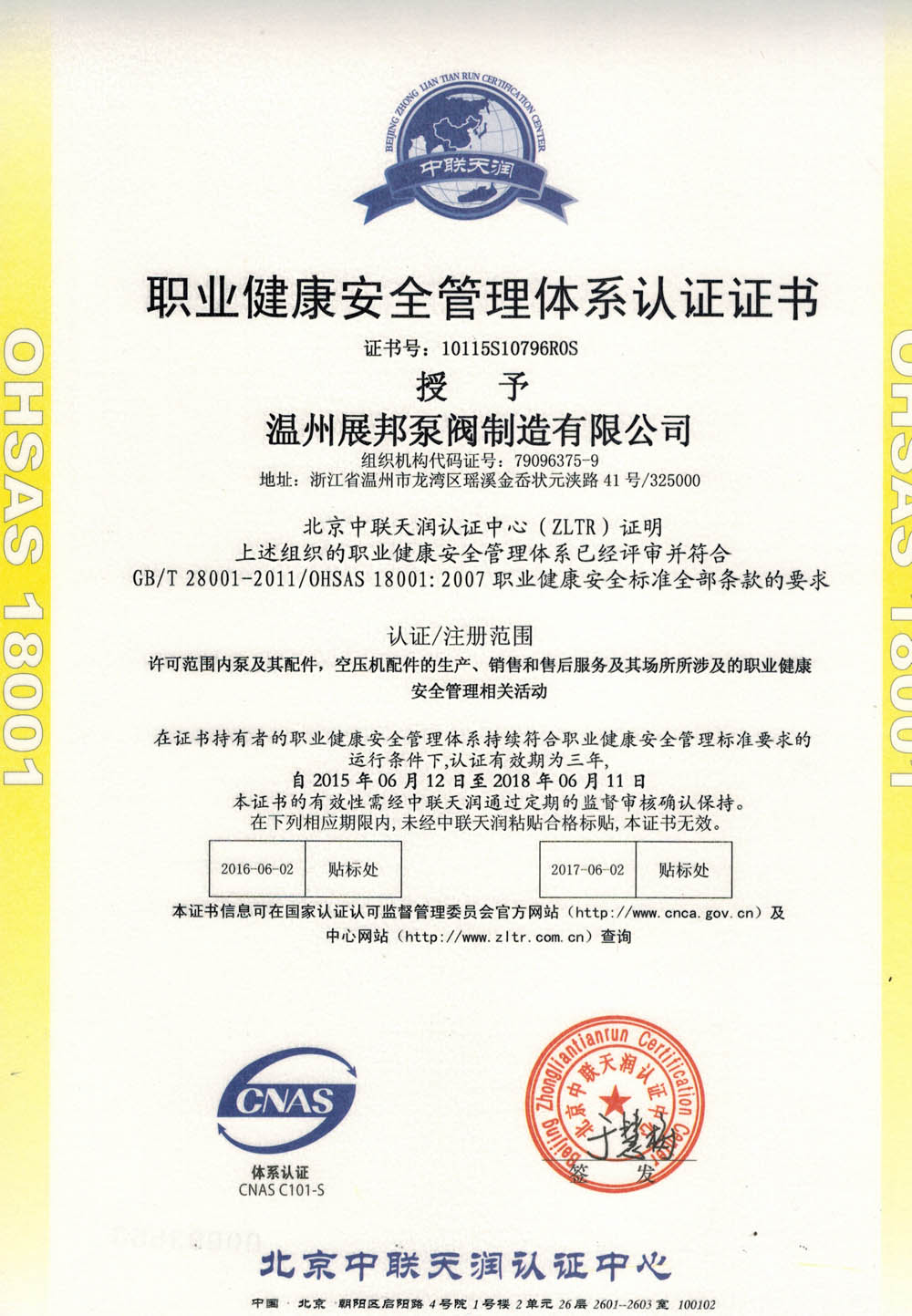 職業健康安全管理體系認證證書   職業健康安全管理體系認證證書